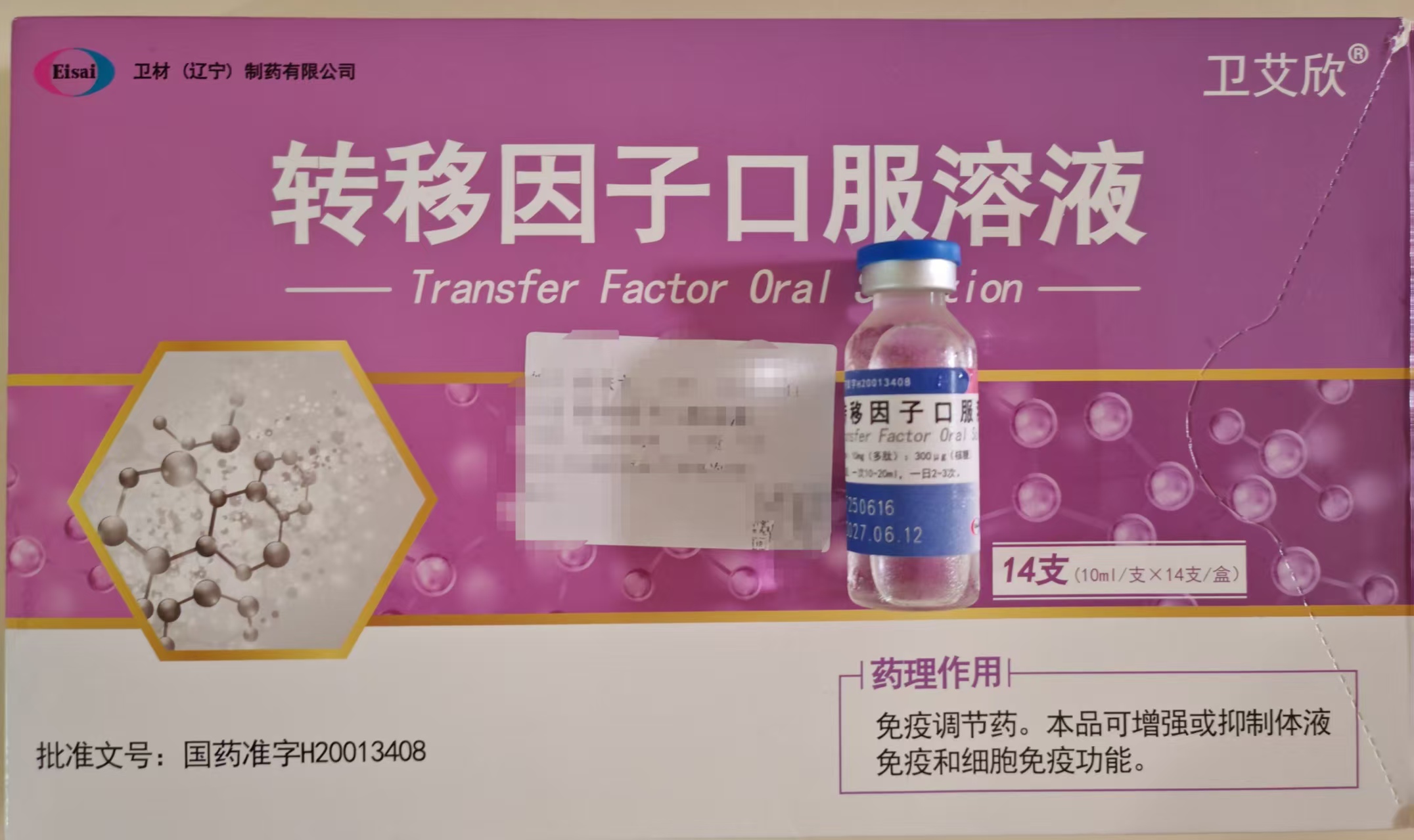 | 💊转移因子口服溶液 | 每天2次 每次1支 |